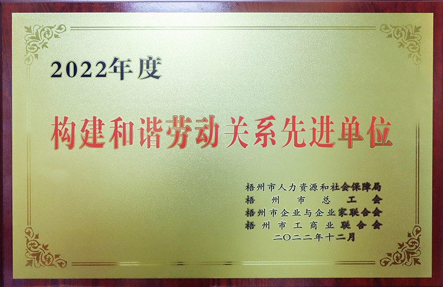 根據(jù)梧州市人力資源和社會保障局、梧州市總工會、梧州市企業(yè)與企業(yè)家聯(lián)合會、梧州市工商業(yè)聯(lián)合會公布了《2022年度梧州市構(gòu)建和諧勞動關(guān)系先進單位名單》的通知,表彰了一批有力維護和諧勞動關(guān)系、切實保障職工權(quán)益的優(yōu)秀企業(yè),百裕世紀(jì)(集團)有限公司光榮在榜。