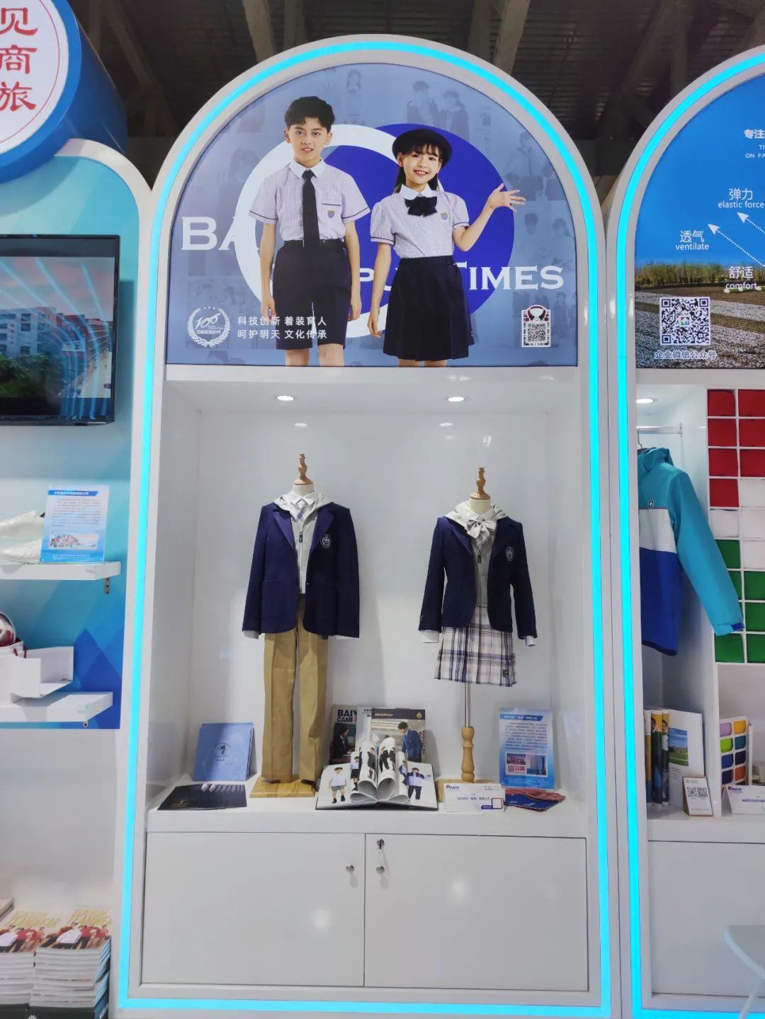 本屆為期4天的展會期間,百裕集團向澳門地區(qū)以及大灣區(qū)區(qū)域展示了精品校園服飾,百裕校園時代校園服飾以“科技創(chuàng)新、著裝育人、呵護明天、文化傳承”為品牌理念;此次展示的精品服飾融入了民族文化元素,科技面料及工藝、時尚流行元素等,向參觀者展示了校園服飾的獨特魅力,不斷吸引了眾多參觀者駐足與關注;并與國內(nèi)外嘉賓、政商代表們進行深入交流